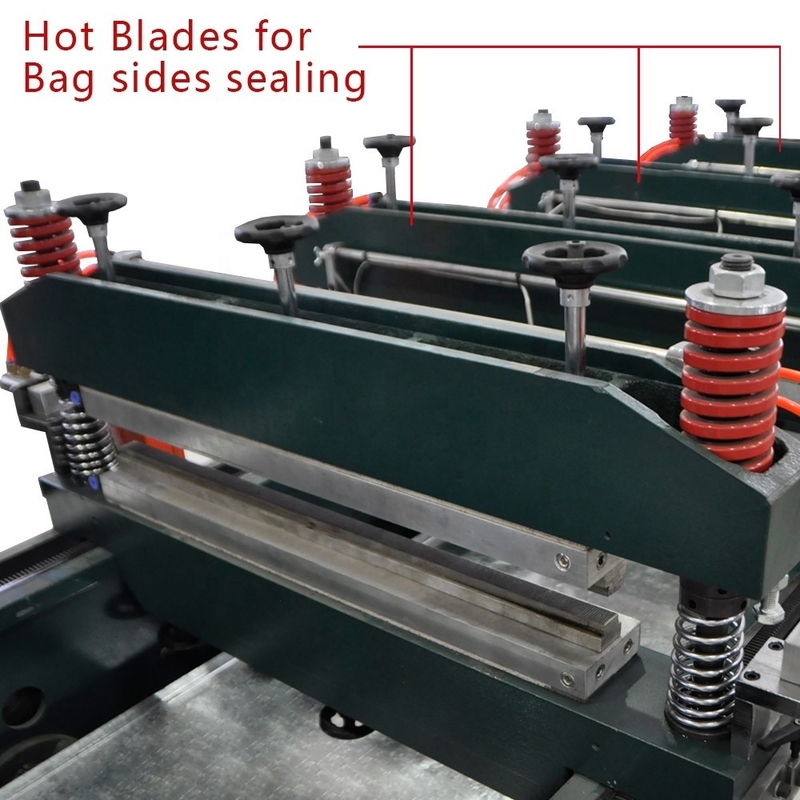 Máy của chúng tôi có thể được nâng cấp tùy chọn với bốn lưỡi gia nhiệt tự động, máy phun keo, động cơ servo 5kw, đếm số lượng túi và vận chuyển chồng để đóng gói dễ dàng.